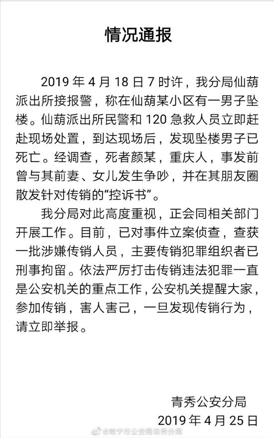 今日(25日)南宁市公安局青秀分局在其官方微博发布警情通报,通报表示,已对此事立案侦查,警方已查获一批涉嫌传销人员,主要传销犯罪组织者已被刑事拘留。以下为关于此事通报全文: